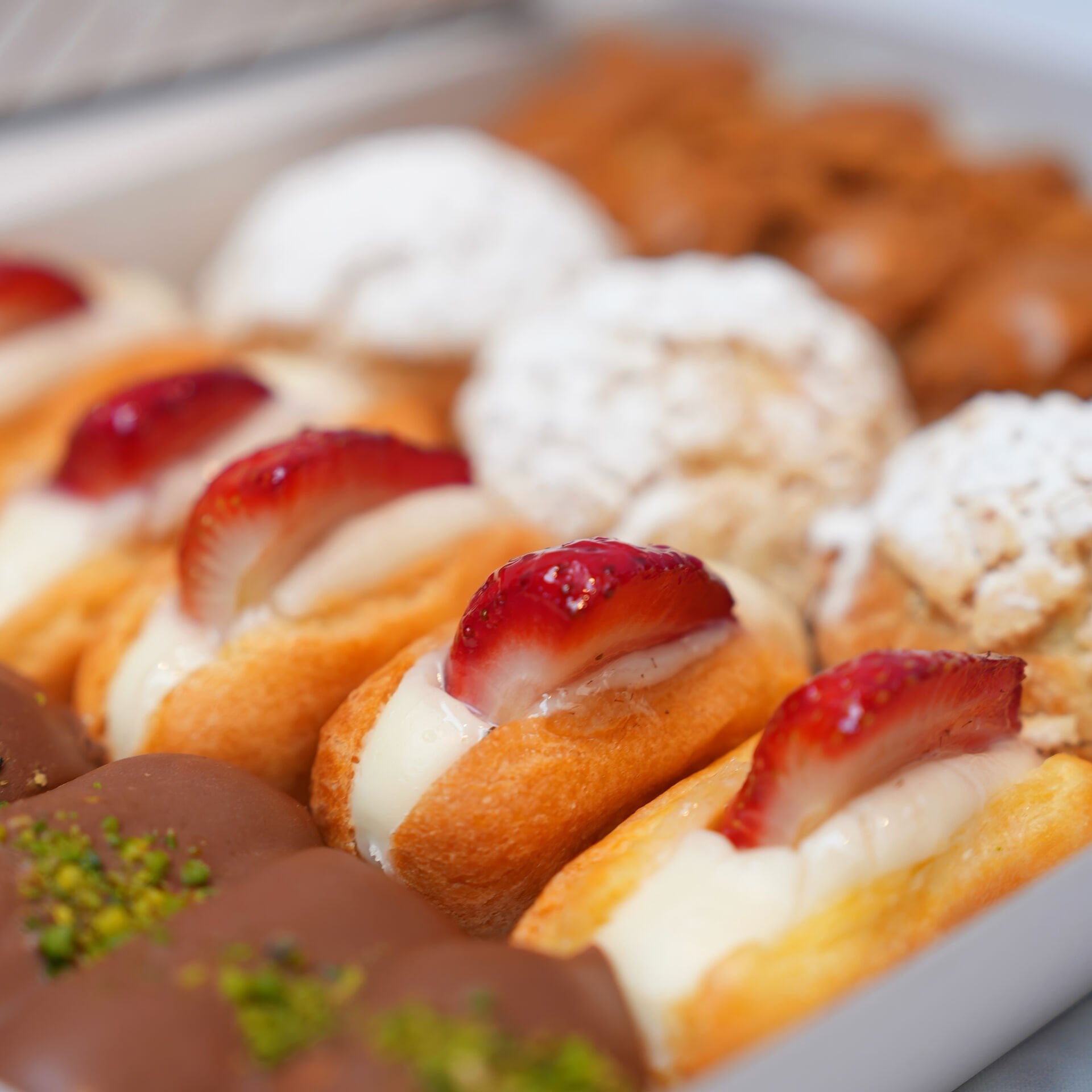 Günlük olarak hazırladığımız karışık mini pasta paketi; ibiza, muzlu rulo, petifür çeşitleri ve tartoletlerden oluşur. Farklı lezzetleri bir arada sunan dengeli bir seçkidir.