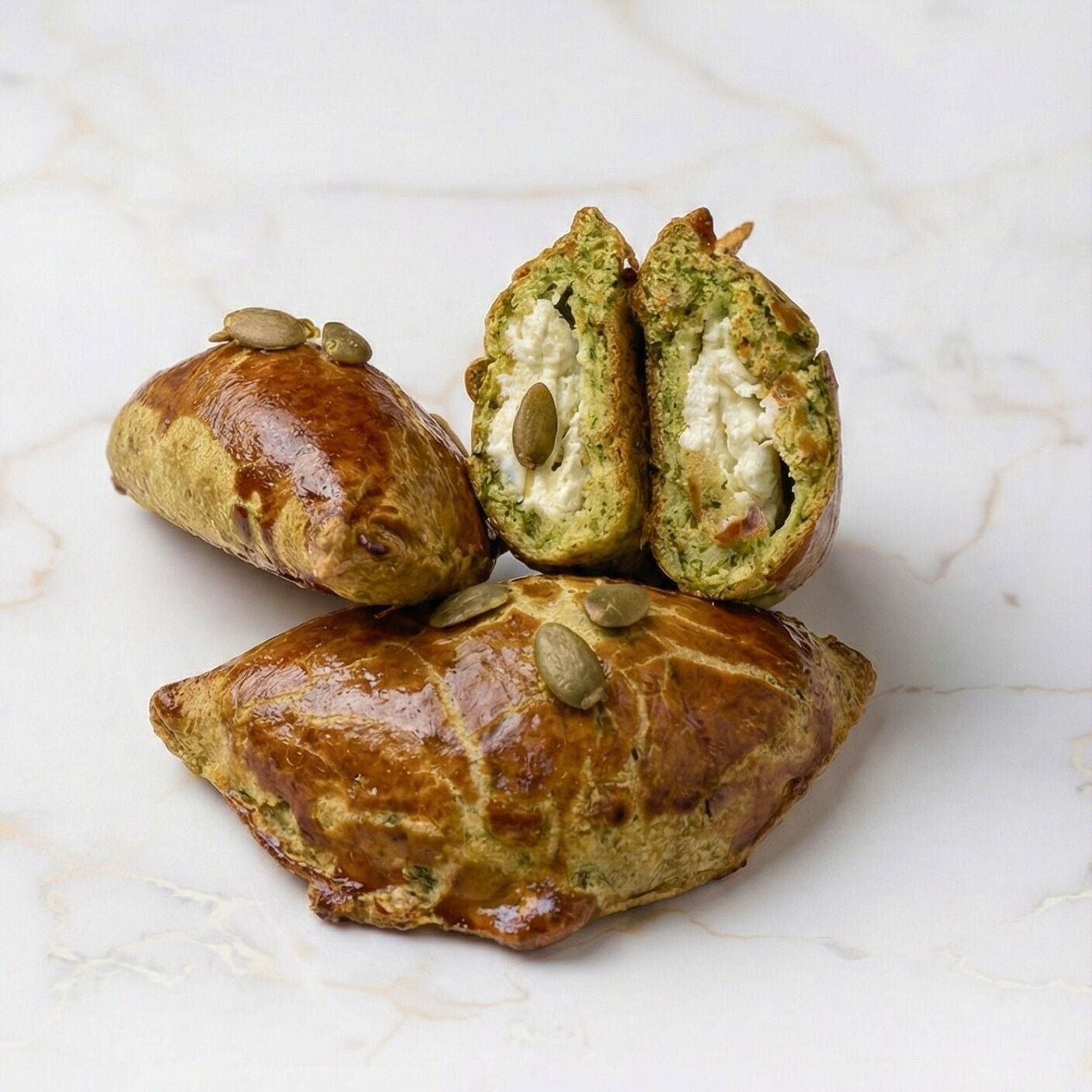 Badem Tat’ta hazırladığımız labneli ıspanaklı poğaça, ıspanaklı hamuru ve labneli iç dolgusu ile tezgâhımızda her gün taze olarak yerini alır.