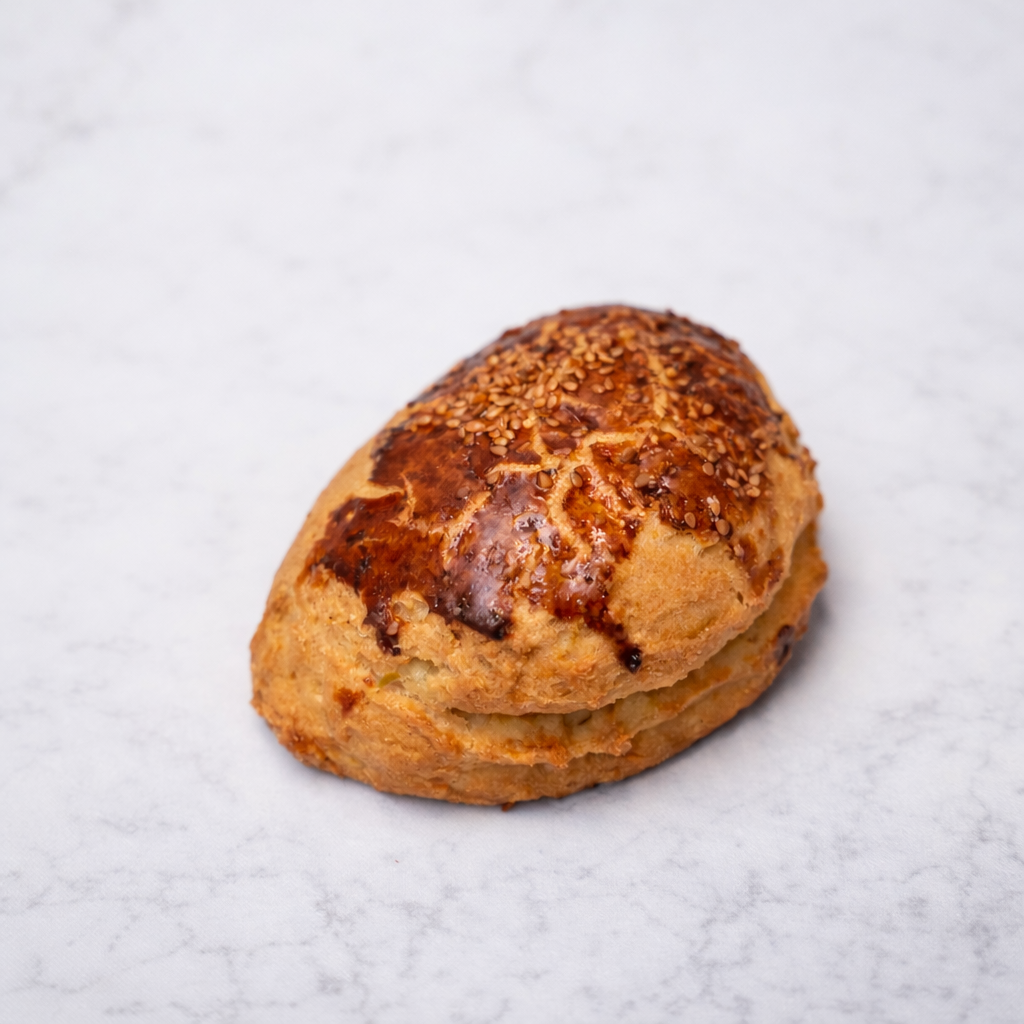 Badem Tat’ta hazırladığımız peynirli ev poğaçası, ev yapımı dokusu ve peynirli iç harcıyla her gün vitrinimizde taptaze.