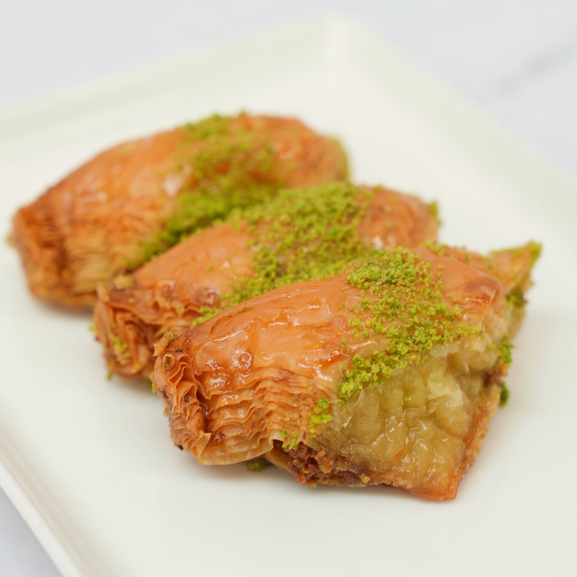 Günlük olarak hazırladığımız şöbiyet, ince açılmış hamuru, irmik kaymağı ve Antep fıstığıyla hazırlanır. Şerbeti dengeli, lezzeti yoğundur.